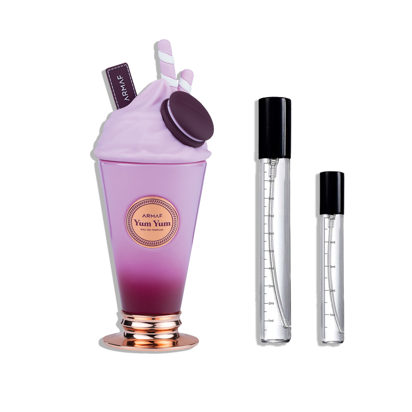 This playful, gourmand-fruity fragrance opens with a burst of juicy cherries and wild berries, layered over zesty citrus that immediately catches attention. It then flows into a heart of rose and soft white florals blended with creamy vanilla, before settling into a warm trail of musk, amber and powdery softness — perfect for a fun, sweet yet sophisticated vibe.
